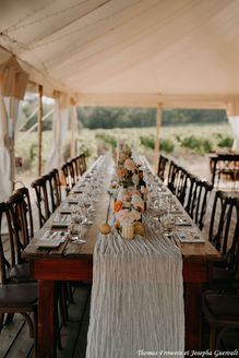 Poursuivez avec un cocktail convivial dans la cour, à l’ombre des mûriers, où discussions, éclats de rire et toasts se mêleront à la douceur de la soirée. Les tables élégamment dressées sous la tente bambou et la piste de danse n’attendent plus que vous pour donner le coup d’envoi des festivités…